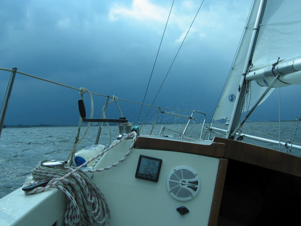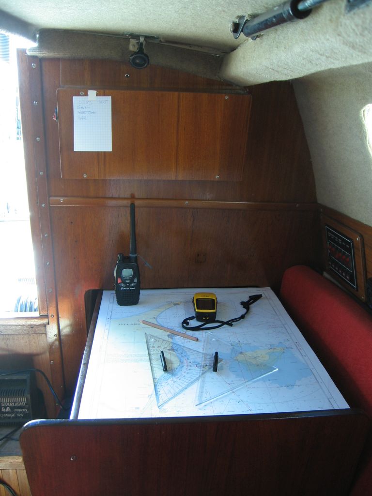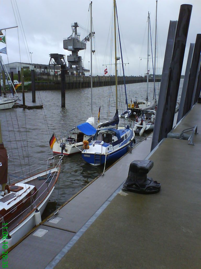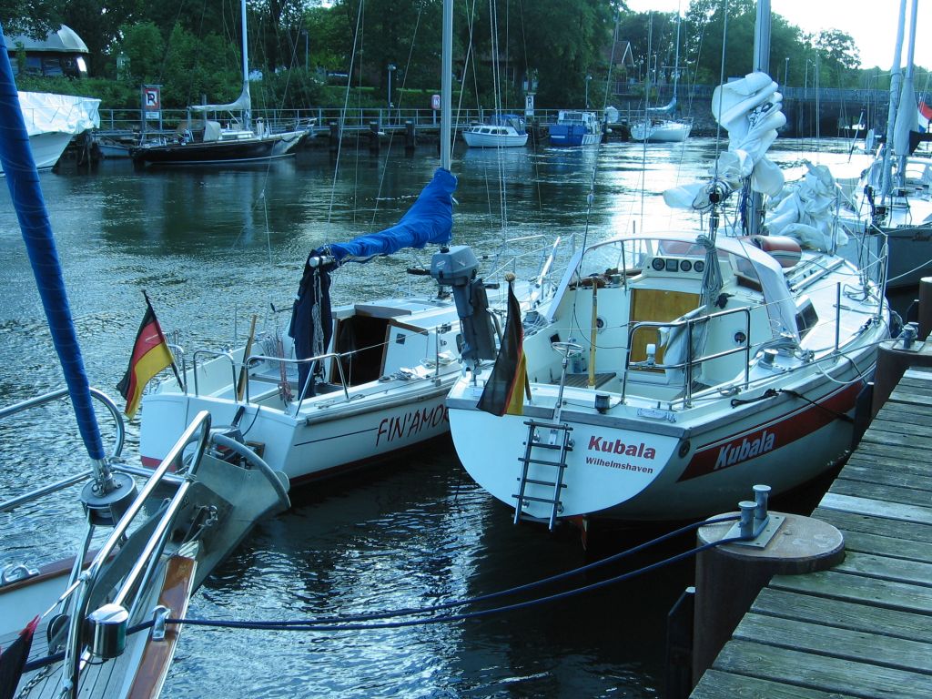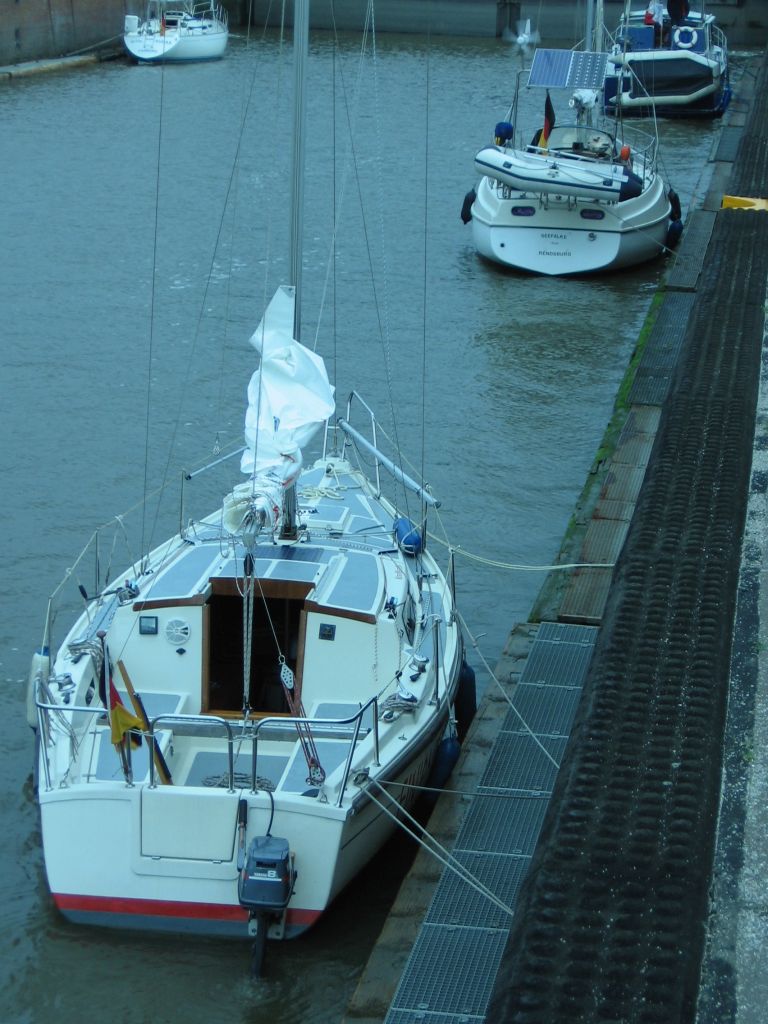 Kaum am Steg zurück, werde ich von einem Nachbarn angesprochen. “Kommst du aus Wedel?”. Nanu, der gute Torsten liegt doch tatsächlich einen Steg weiter als ich im Wedeler Yachthafen. Er ist auch alleine unterwegs; allerdings mit einem größeren Boot. Und sein Kumpel Thomas – auch aus Wedel – liegt hier ebenso; und auch er ist alleine unterwegs; auch mit einem großen Boot. Beide haben 1 Woche frei von zu Hause bekommen, wollten aber jeder mit dem eigenen Boot fahren, um das Alleinsegeln zu genießen. Als wir unsere Ziele ausgetauscht hatten, kam natürlich auch mein Kartenproblem zur Sprache. Torsten hat mir kurzerhand alle benötigten Karten geliehen.