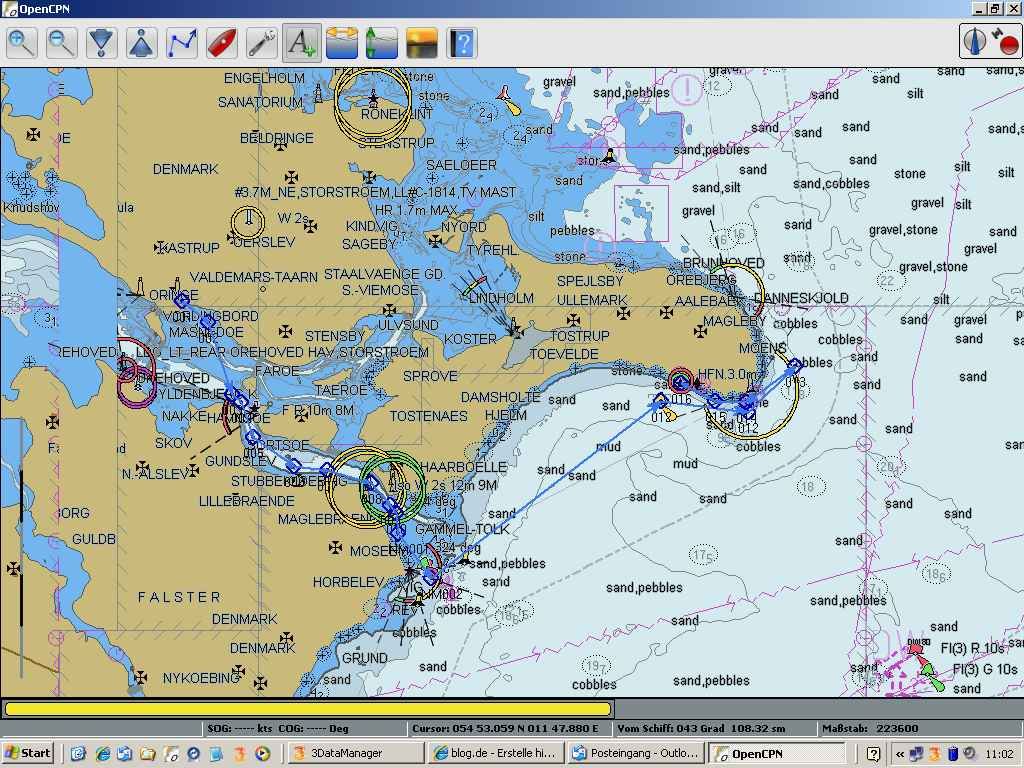 Ab morgen habe ich ja vor, in ungeplante Gegenden vorzustoßen. Und weil sie eben nicht geplant waren, habe ich dafür auch keine Karten. Deshalb bin ich auch Omö angelaufen. Im Hafenführer stand, dass es hier einen Marineservice mit Seekartenverauf gäbe. Den habe ich dann auch schon gestern ausfindig gemacht. Öffnungszeit: heute von 16-18 Uhr. Also musste/durfte ich sowieso hier bleiben. So gegen Mittag fiel mir ein, dass ich ja evtl. noch mehr Bargeld benötigen würde. Also habe ich im Restaurant nachgefragt, wo man denn hier welches bekäme. “Beim Inselkaufmann, der aber seit einer halben Stunde zu hat.” war die Antwort. Ne, is klar! Dann habe ich jemanden vom Hafenpersonal gefragt, wie oft die Fähre wohin fährt und ob ich denn am Ziel einen Geldautomaten vorfinden würde. “Die Fähre fährt alle 2 Stunden nach Seeland (aus Sicht der Omöer ist das das Festland). Von dort sind es 20 Minuten mit dem Bus, bis zu einem Ort mit Geldautomat.”. Na, toll! Ich müsste um 16 Uhr Geld für den Erwerb von Seekarten haben. “Dann lassen Sie uns doch mal schauen, ob ich die überhaupt habe.”. Aha, ich spreche also schon mit dem Marineserviceinhaber. Flugs in seine Rumpelkammer gegangen und nach den gesuchten Karten geschaut. 1 von 3 hatte er. Völlig verstaubt; musste er erst abpusten. Immerhin hatte ich soviel Bargeld gerade noch. Die restlichen Karten bekomme ich dann bestimmt in Vordingborg (meinem nächsten Ziel), wohin ich dann aber schon ohne Karte oder eben mit meinem Schlaptop und GPS segeln müsste. Das geht schon.